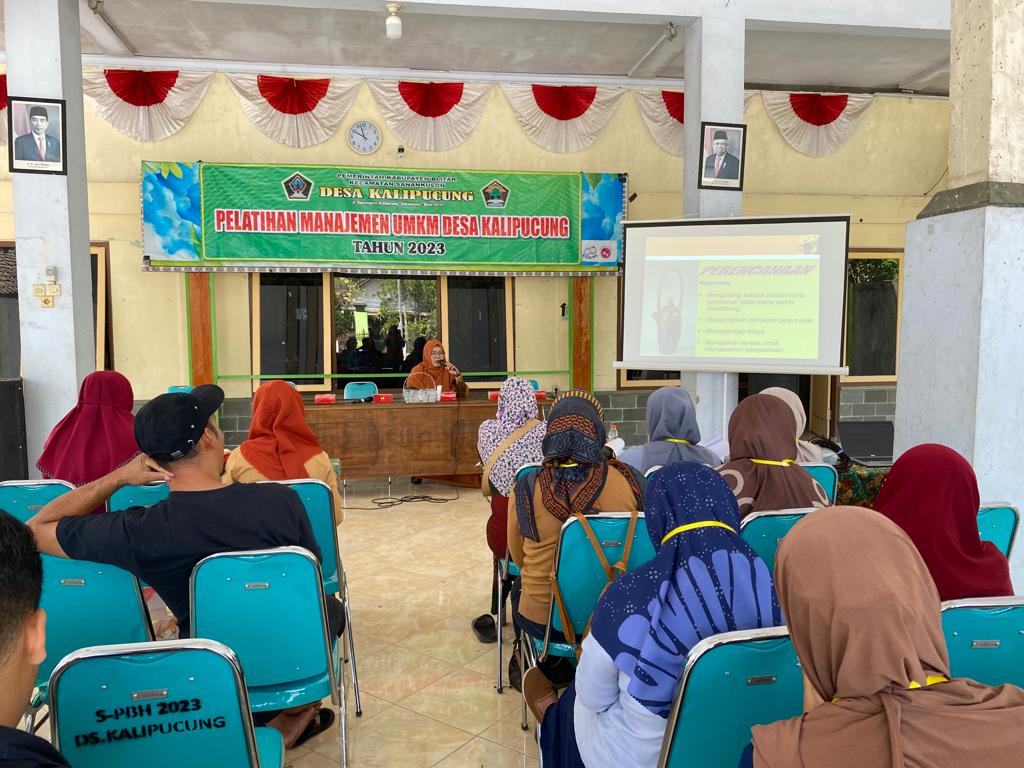 Desa Kalipucung mengadakan pelatihan manajemen bagi Usaha Mikro, Kecil, dan Menengah (UMKM) dengan tema “Strategi Pengembangan IKM/UMKM Melalui Pemasaran Online”. Pelatihan ini bertujuan untuk meningkatkan keterampilan dan pengetahuan para pelaku UMKM di Desa Kalipucung dalam memanfaatkan teknologi digital untuk memasarkan produk mereka secara lebih luas dan efektif.