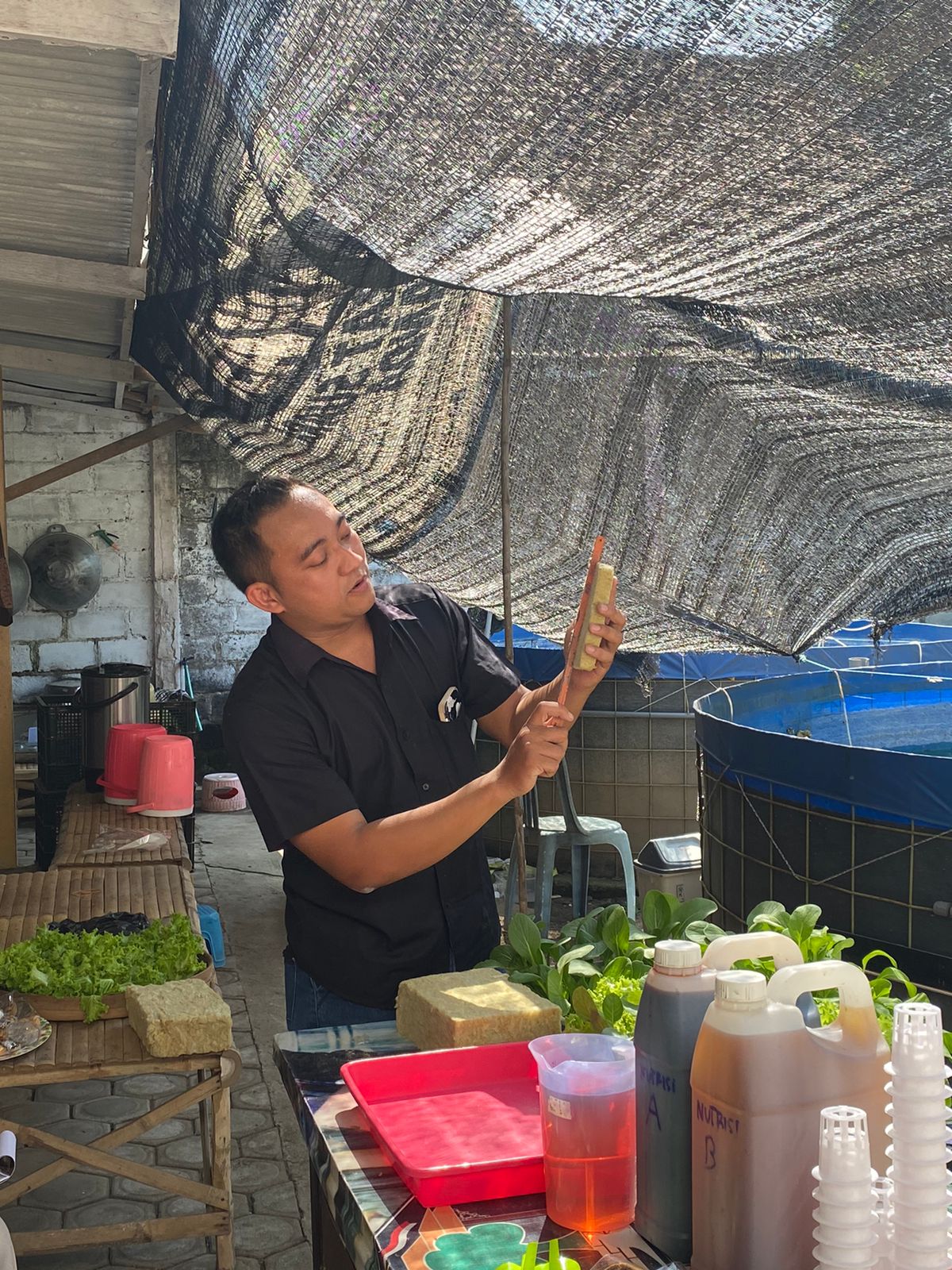 - Sesi Teori: Pada sesi ini, peserta akan mendapatkan penjelasan tentang dasar-dasar hidroponik, termasuk alat apa saja yang dibutuhkan pada sistem hidroponik seperti Rockwool, net pot. Pembicara juga membagikan pengetahuan tentang kebutuhan nutrisi tanaman dan cara perawatan sistem hidroponik.