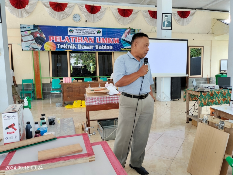 Pelatihan UMKM dan Teknik Dasar Sablon di Kantor Desa Kalipucung