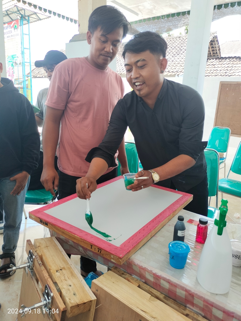 Salah satu hal yang menarik dari sesi ini adalah kesempatan para peserta untuk mempraktekkan langsung teknik sablon. Mereka dibimbing langkah demi langkah dalam membuat desain dan mencetaknya pada media yang telah disiapkan. Hal ini memungkinkan mereka untuk lebih memahami cara kerja sablon secara nyata.