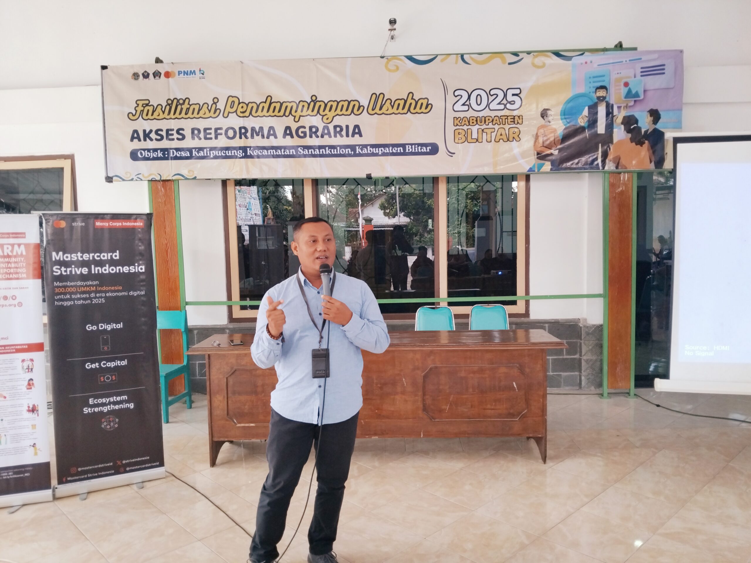 Kantor Pertanahan Kabupaten Blitar melalui Seksi Penataan dan Pemberdayaan menggelar rangkaian kegiatan Fasilitasi Pendampingan Usaha dalam rangka Penanganan Akses Reforma Agraria (RA) Tahun Anggaran 2025. Acara ini berlangsung di Kantor Desa Kalipucung, Kecamatan Sanankulon, dan diikuti oleh para pelaku Usaha Mikro, Kecil, dan Menengah (UMKM) dari wilayah setempat yang merupakan subjek penerima manfaat Reforma Agraria.