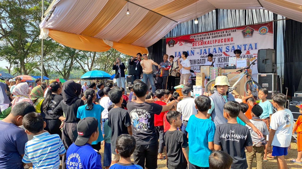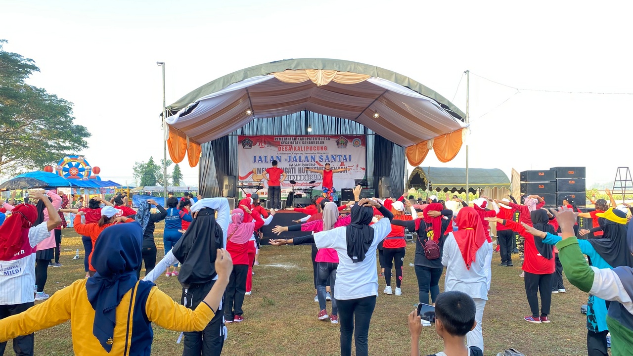 Lapangan Bhirawa, Desa Kalipucung – Pada hari Minggu, 4 Agustus 2024, Lapangan Bhirawa di Desa Kalipucung menjadi pusat kegiatan yang meriah dan penuh semangat. Acara “Jalan-Jalan Santai” yang diselenggarakan oleh Pemerintah Desa Kalipucung dan Karang Karuna Bina Bhakti Pemuda Desa Kalipucung, dengan dukungan dari Mahasiswa Program Pengabdian Masyarakat oleh Mahasiswa (PMM) Universitas Muhammadiyah Malang, berlangsung sukses dan menjadi highlight dalam rangka peringatan Hari Besar Kemerdekaan Republik Indonesia ke-79 dan Hari Jadi Kota Blitar yang ke-700.