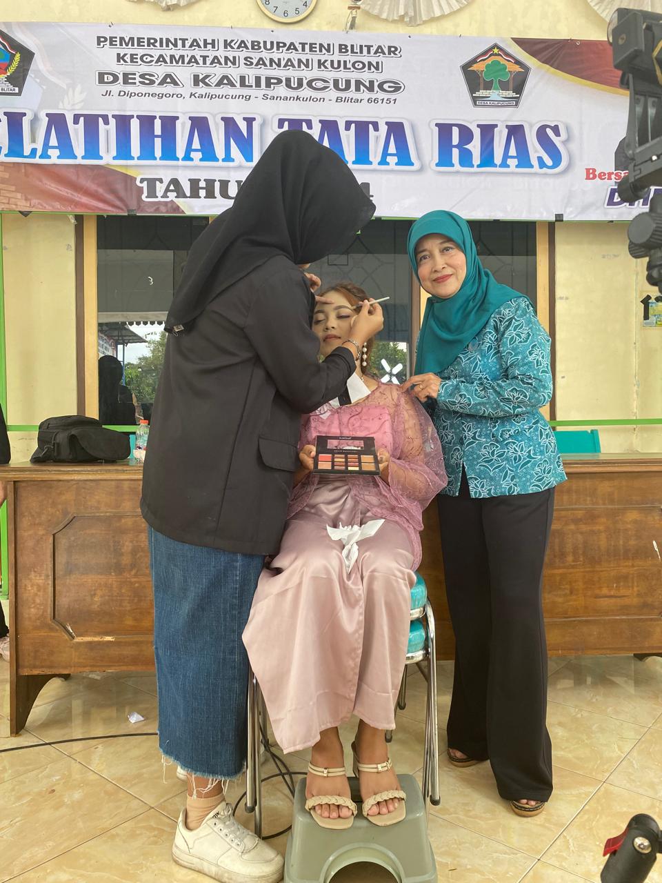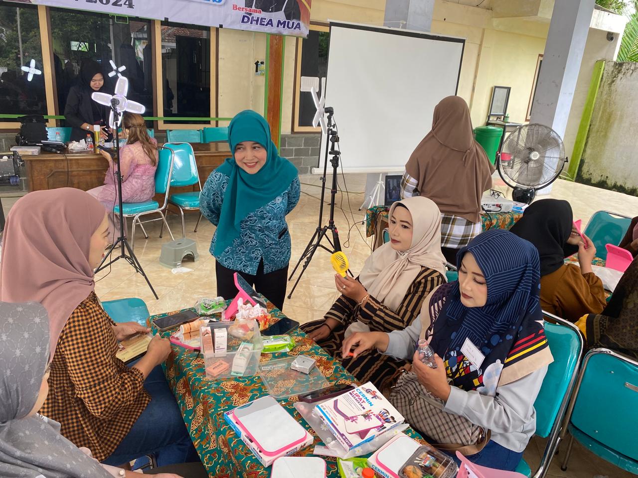 Pelatihan dimulai dengan sesi praktek make up, di mana setiap kelompok diberi kesempatan untuk mengaplikasikan teknik yang telah diajarkan pada model mereka. Suasana penuh semangat terasa di Kantor Desa Kalipucung, dengan peserta yang tekun dan instruktur yang sabar menjelaskan setiap detail.